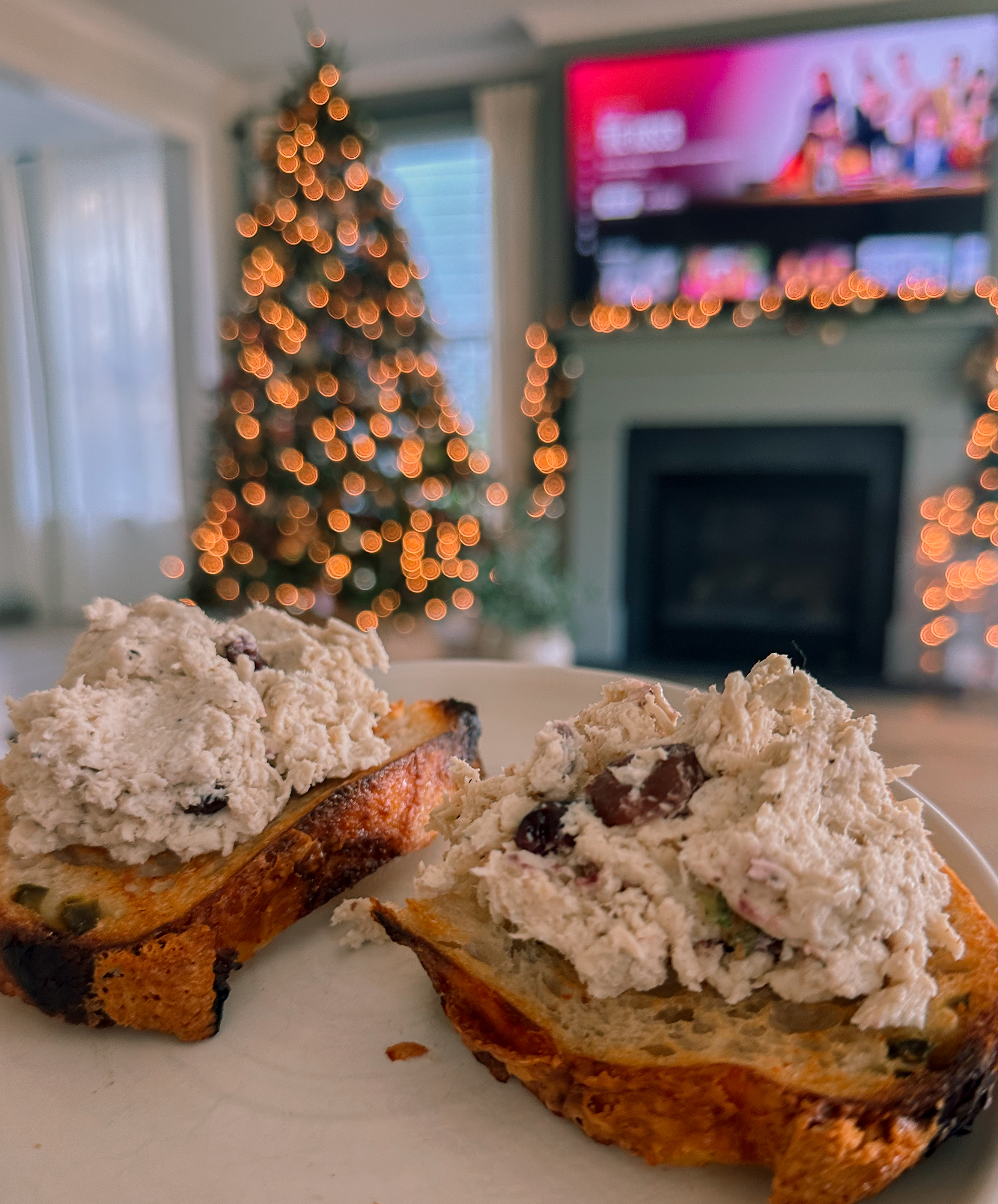 And like most meals lately, this has been my go-to chicken salad on top of toasted jalapeño cheddar and pepper jack sourdough bread with some smashed avocado. I’m not sure where the baby is sitting this time, but I feel like I can only eat small amounts before I get so uncomfortably full it hurts to breathe! I’ve heard this can be normal in some pregnancies, but I used to be able to down plates on plates of this kind of stuff.