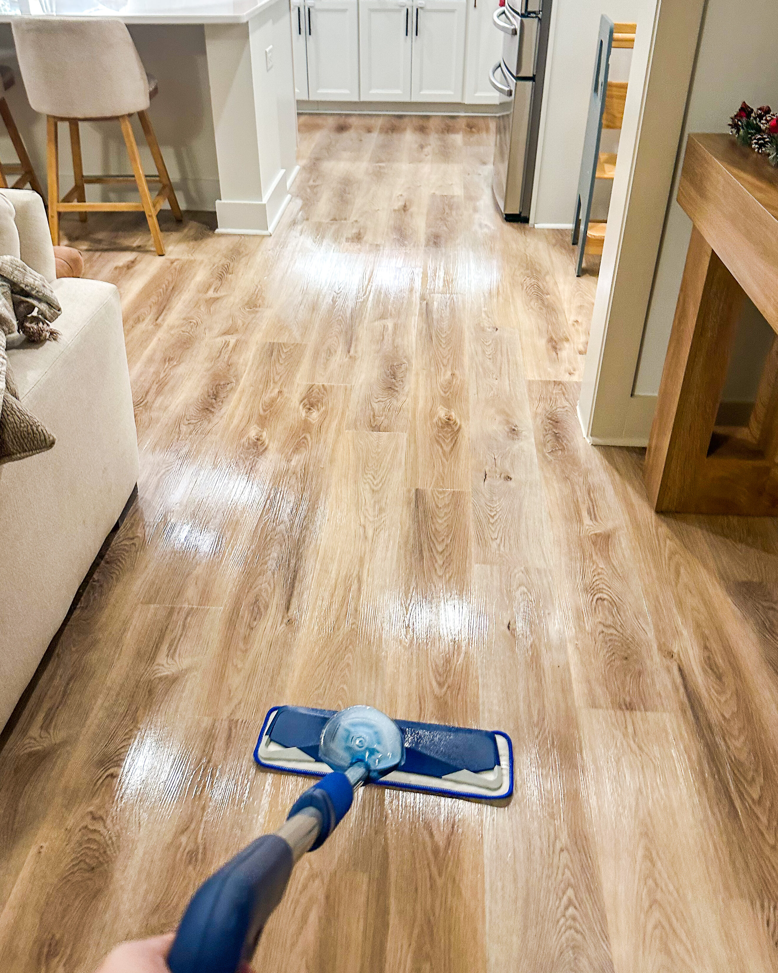 I do a deep mop cleaning every two weeks, and on the nights in between, I use the Bona floor cleaner. I love that you can wash the mop heads, so I bought a pack of twenty and just rotate them as I go.